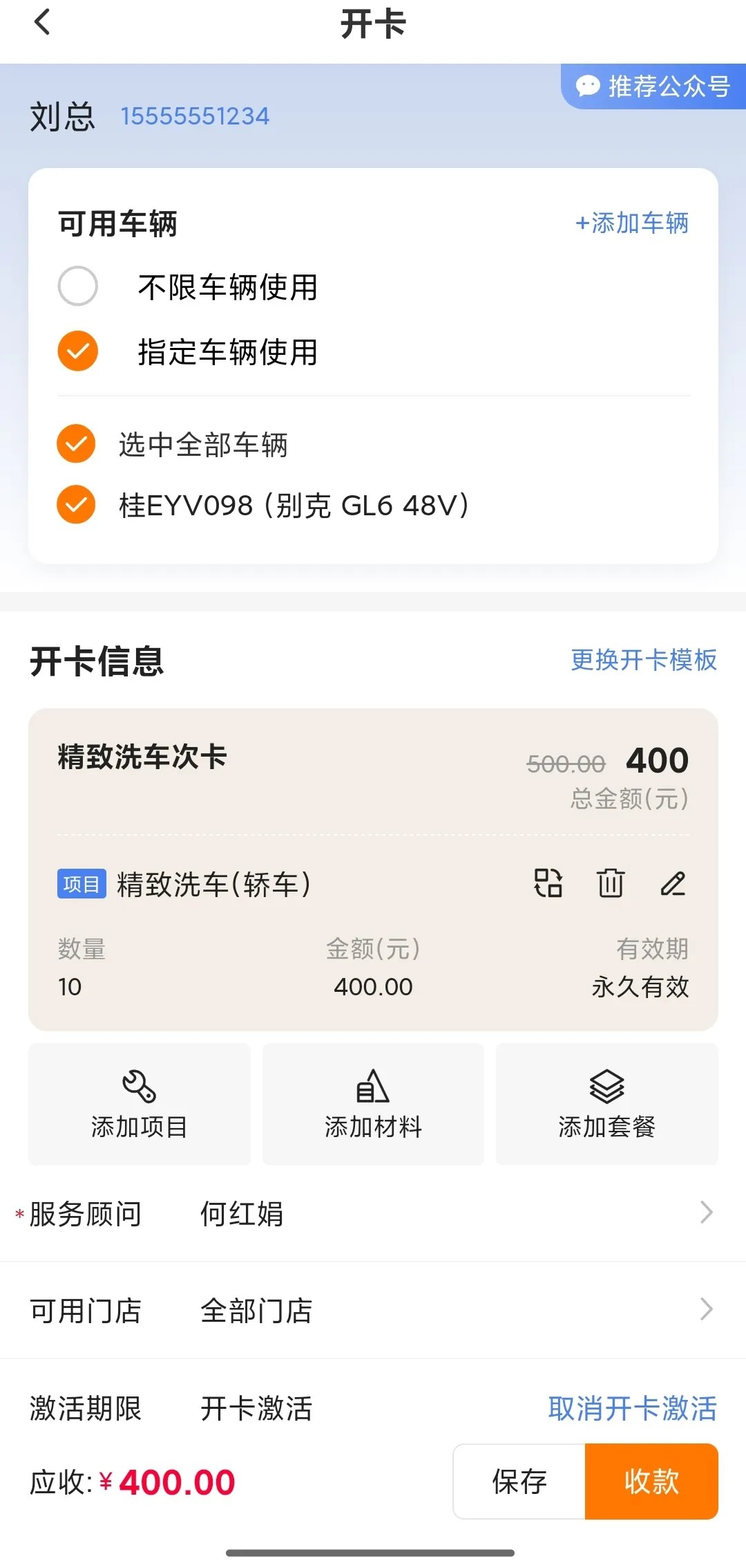 As soon as the car owner enters the store, they can see their membership card benefits and consumption history