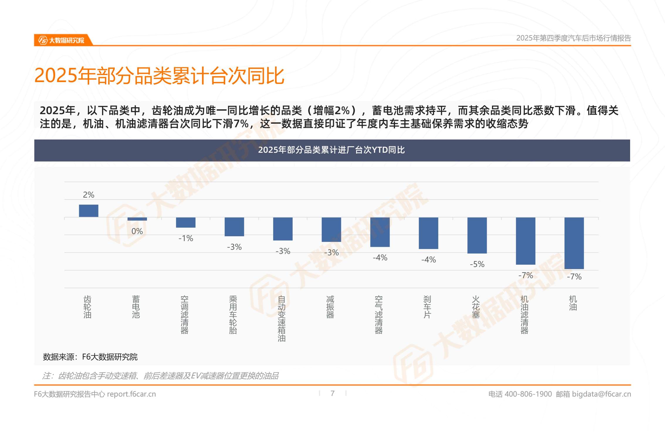 In 2025, among the following categories, gear oil will become the only category with a year-on-year growth rate of 2%, while battery demand will remain stable, while all other categories will decline year-on-year. It is worth noting that the number of engine oil and oil filters decreased by 7% year-on-year, which directly confirms the shrinking trend of basic maintenance needs of car owners during the year.