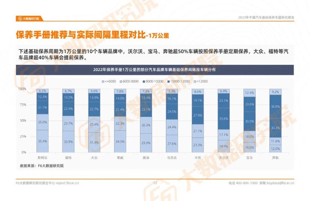 ▍Among the 10 vehicle brands with a basic maintenance cycle of 10000 kilometers, over 50% of Volvo, BMW, and Mercedes Benz vehicles undergo regular maintenance according to the maintenance manual, while over 40% of Volkswagen, Ford, and other car brands undergo early maintenance.