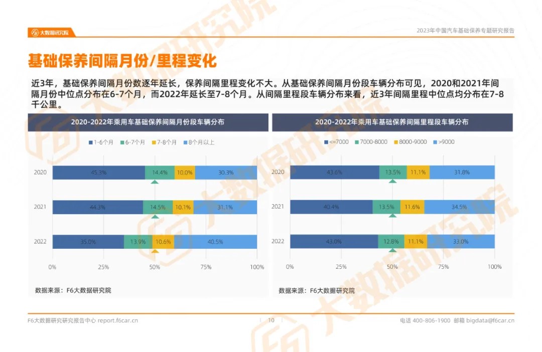 From the distribution of vehicles in the basic maintenance interval months, it can be seen that the median distribution of interval months in 2020 and 2021 is 6-7 months, while in 2022 it has been extended to 7-8 months.