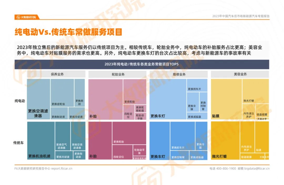 In 2023, independent after-sales services for new energy vehicles will still mainly focus on traditional projects. Compared to traditional cars, pure electric vehicles have a higher proportion of tire repair services in the tire business; In the beauty industry, pure electric vehicles also have a higher demand for film application services.