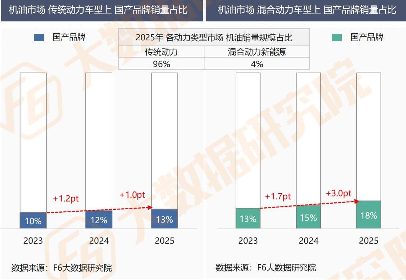 It is worth noting that although the overall size of the hybrid vehicle oil market is relatively small (only 4%), the increase in the proportion of domestic brands in this field is significantly higher than that of the traditional power vehicle market. This difference not only reflects the first mover competitive advantage of domestic engine oil brands in the new energy related field, but also indicates that they have stronger market growth potential and strategic layout value in the future trend of power type switching.