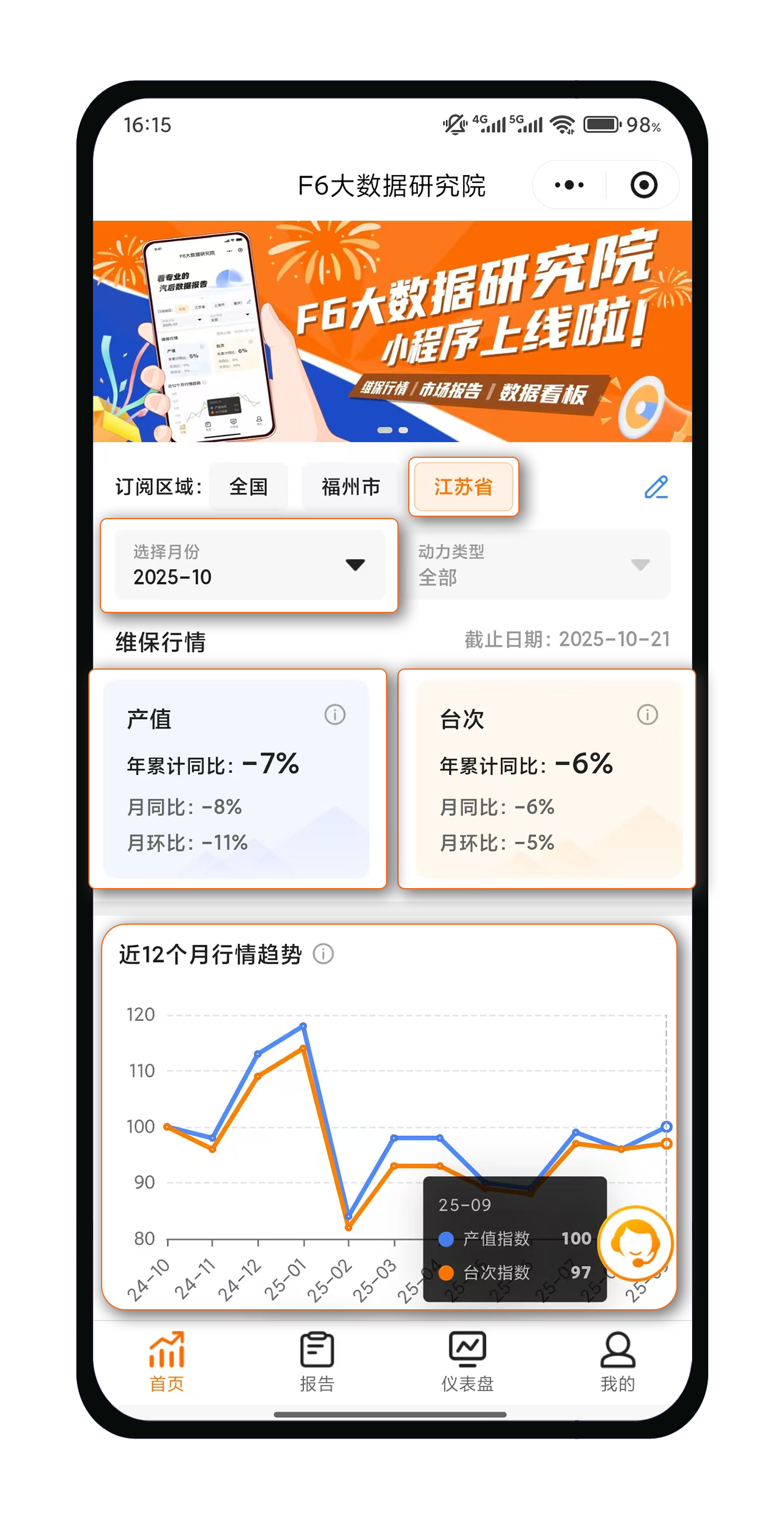 例如:查看 江苏省10月份的维保行情