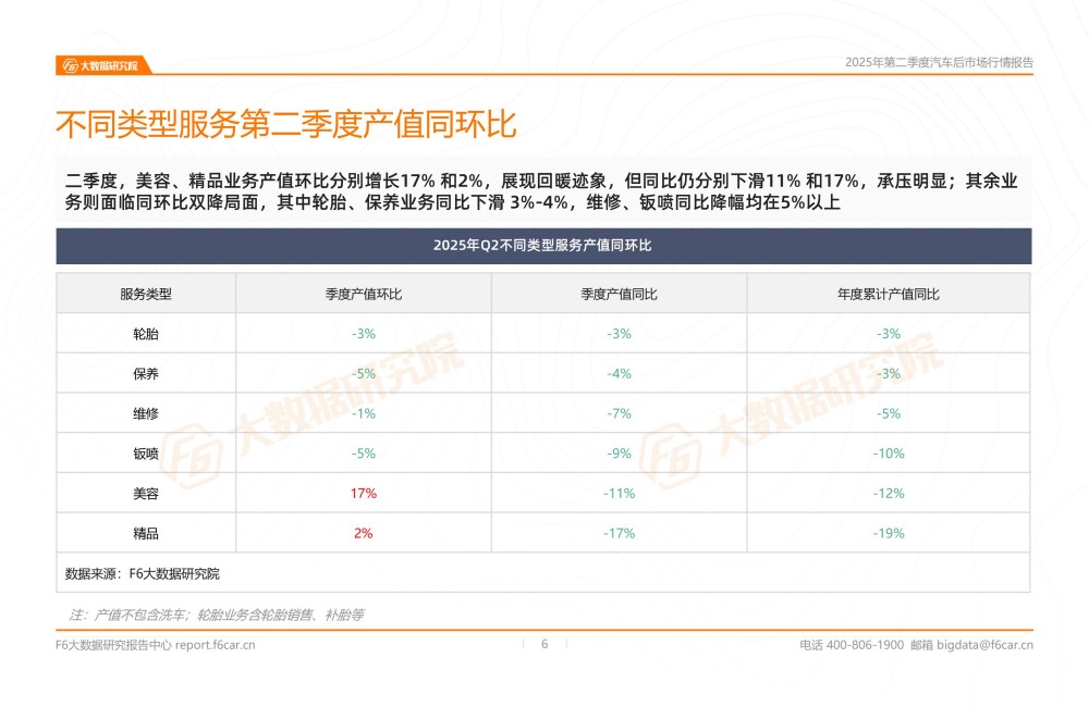 2025年上半年,后市场累计产值同比下滑5%,进厂台次同比下滑4%,市场需求收缩幅度显著